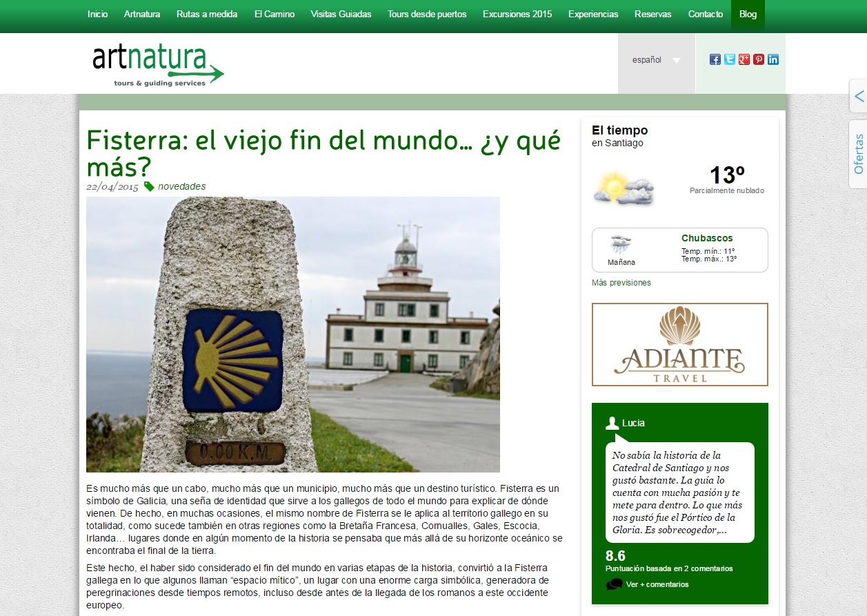 Unha das tarefas a realizar en Artnatura Galicia é -e será- a publicación, no blog de www.artnaturagalicia.com, de artigos breves e menos breves sobre diversos destinos turísticos galegos. Tamén sobre o Camiño de Santiago.