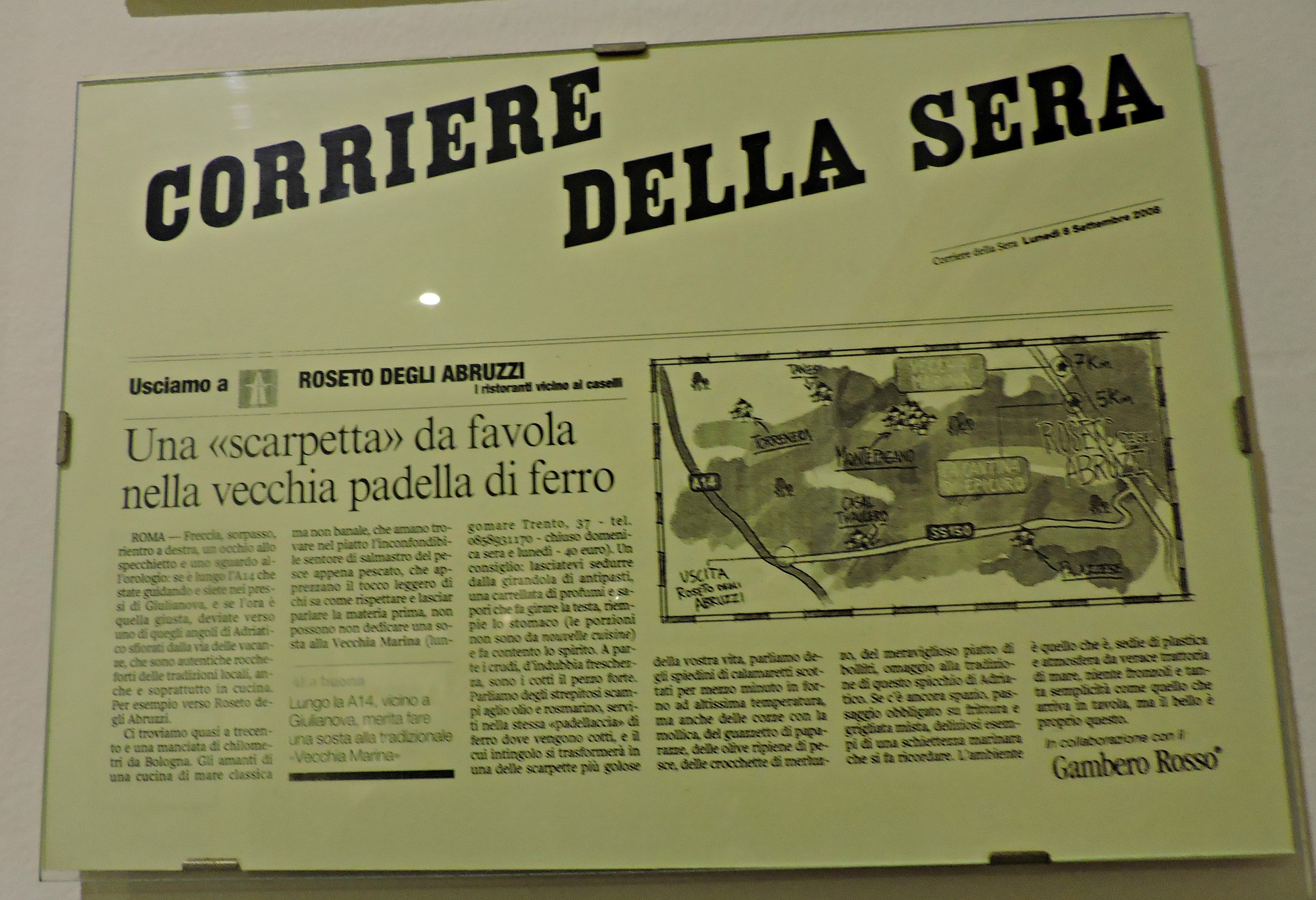 Regresamos a Teramo pola tarde e mentres Miguel traballaba na pizzería seguimos desfrutando dos paseos e do bo café “da Luca” na Via Castello. Pola noite chegaría o peche a estes incribles momentos cunha cea ó lado do mar no restaurante Vecchia Marina de Roseto. Sabor a Adriático. Antipasti fríos e quentes, excelente marisco e pescado, e un formidable servizo. Non en van este local está considerado un dos imprescindibles do litoral oriental italiano!