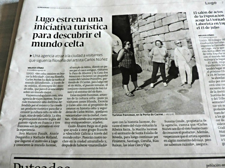 Hoxe publicouse no diario El Progreso un artigo sobre o paquete turístico da Galice Celtique de Carlos Núñez, un proxecto co que levamos traballando dende o mes de febreiro en Viajes Mundo Galaico.