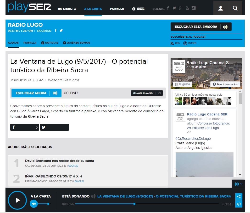 Onte regresei á Ventana (Radio Lugo Cadena Ser) para conversar nesta ocasión sobre as potencialidades turísticas da Ribeira Sacra.