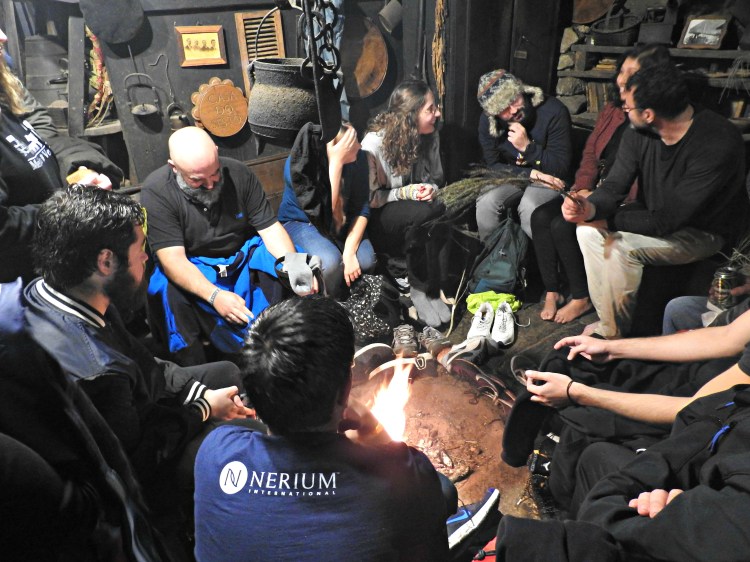 Logo da aventura… tempo para relaxarnos. Comemos no núcleo de Piornedo e conversamos ó redor do lume nunha das súas pallozas. ¡Que experiencia, sobre todo para os que viñan de lonxe!