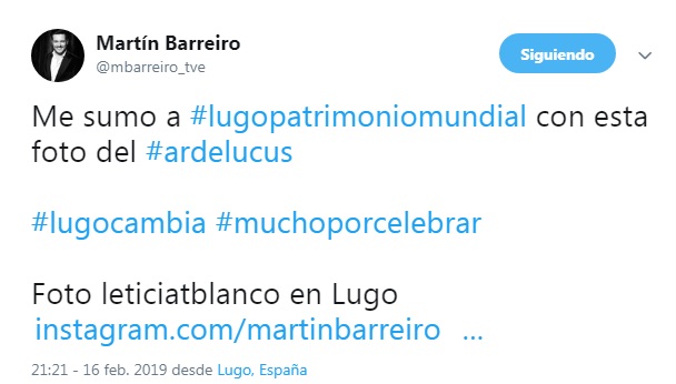 Máis celebridades lucenses nativos, de adopción, ou amantes da cidade uníronse esta fin de semana á campaña de apoio á candidatura de Lugo a cidade Patrimonio da Humanidade UNESCO usando o hashtag #LugoPatrimonioMundial… seguiremos sen parar ata ser Trending Topic Mundial! 🙂