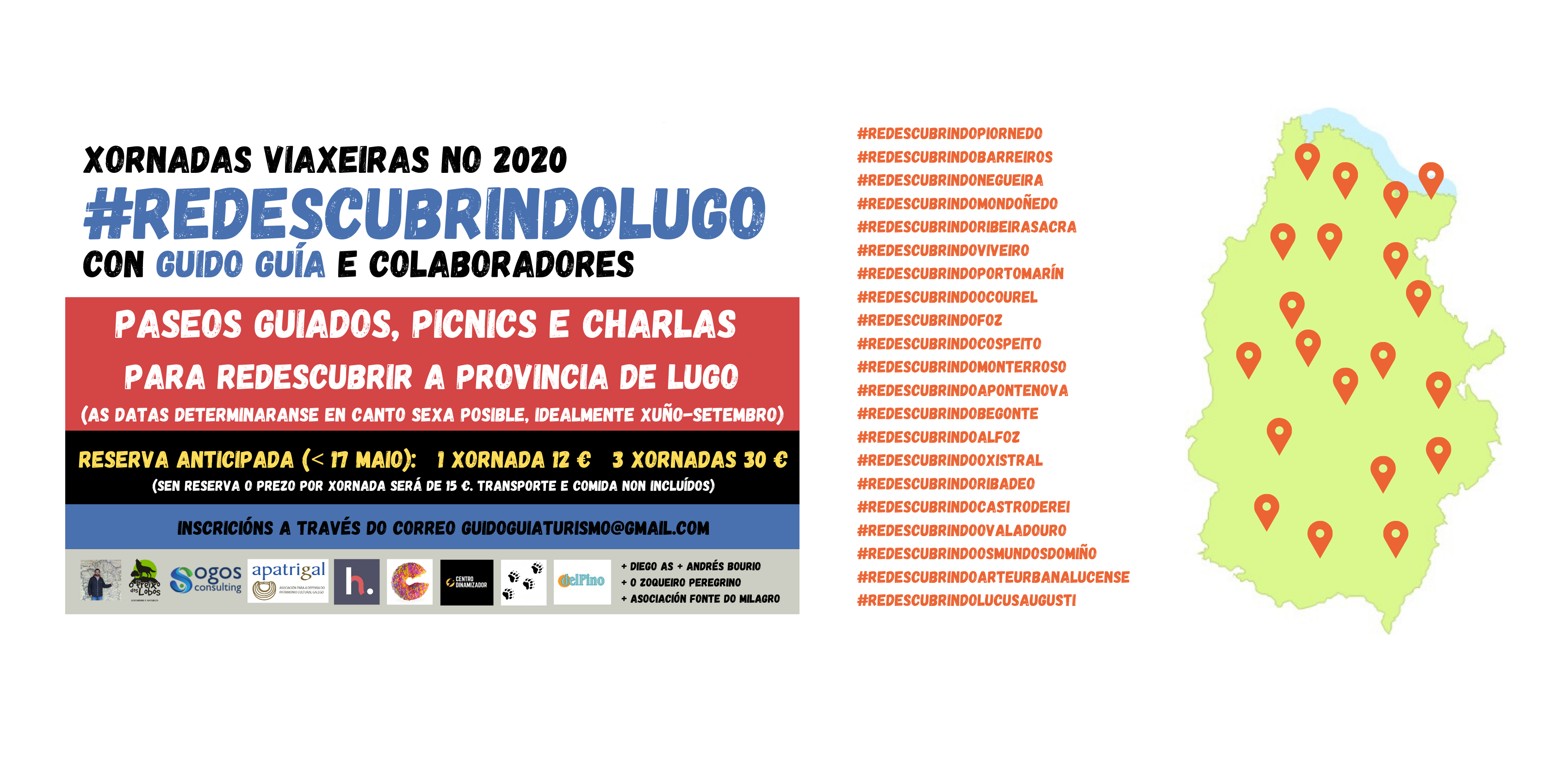 Este «ilusionante proxecto», como di Guido, «é a nosa principal aposta para o que queda do ano 2020». Consiste en vinte xornadas viaxeiras, deseñadas e confirmadas, «nas que gozaremos xuntos das marabillas desta provincia». En cada unha destas xornadas haberá paseos guiados, pícnics, charlas e algunha sorpresa máis.