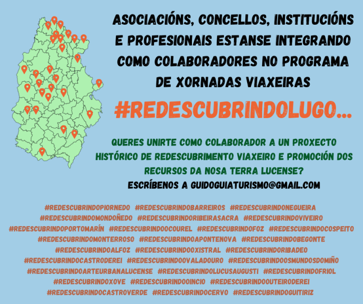 Hai 8 días lanzamos o proxecto #RedescubrindoLugo e neste pouco tempo xa sumamos unha chea de novos colaboradores animados a sumar novos puntos nese precioso mapa da provincia de Lugo que redescubriremos xuntos no que resta de 2020… queres unirte a este proxecto e sumar territorios? Contamos contigo ❤️ Escríbenos a guidoguiaturismo@gmail.com
