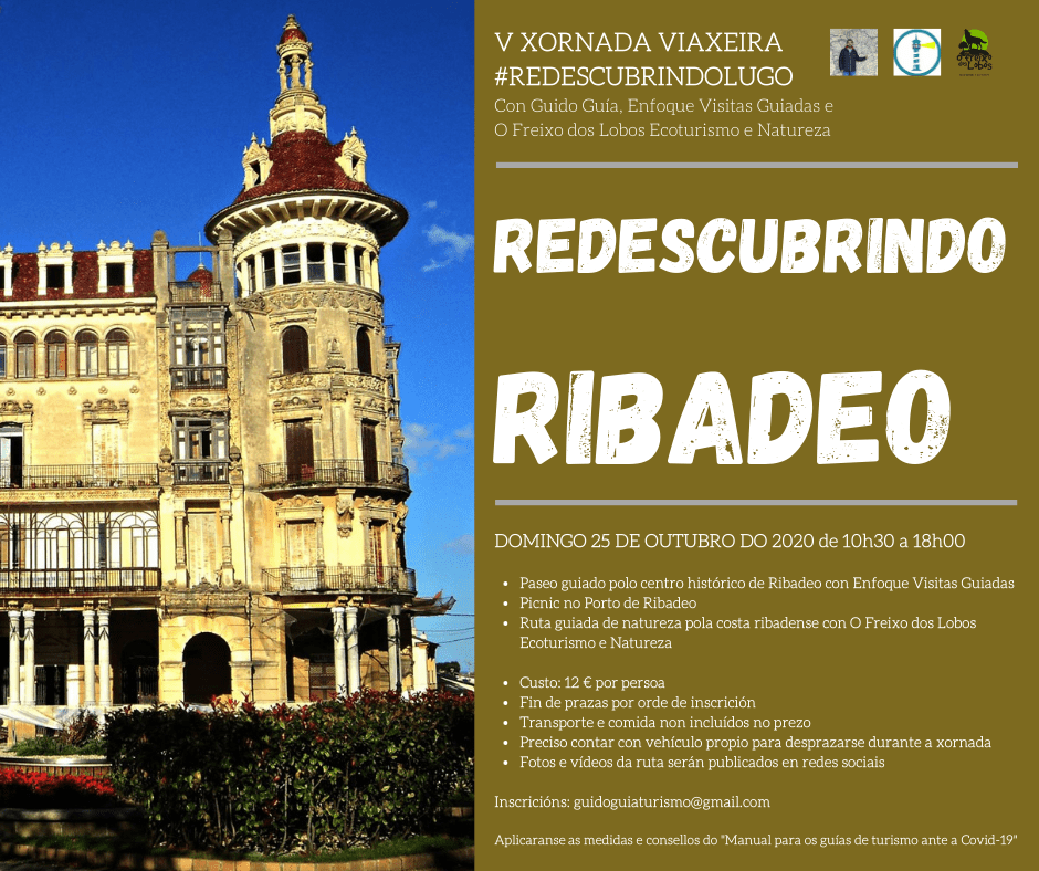 O programa de xornadas viaxeiras #RedescubrindoLugo continúa e hoxe xa podemos anunciar a súa quinta xornada… #RedescubrindoRibadeo! O 26 de outubro de 10h30 a 18h00, con Guido Guía, enfoquevisitasguiadas e O Freixo Dos Lobos Ecoturismo e Natureza pasearemos e conversaremos sobre a historia e a natureza destas terras 💙