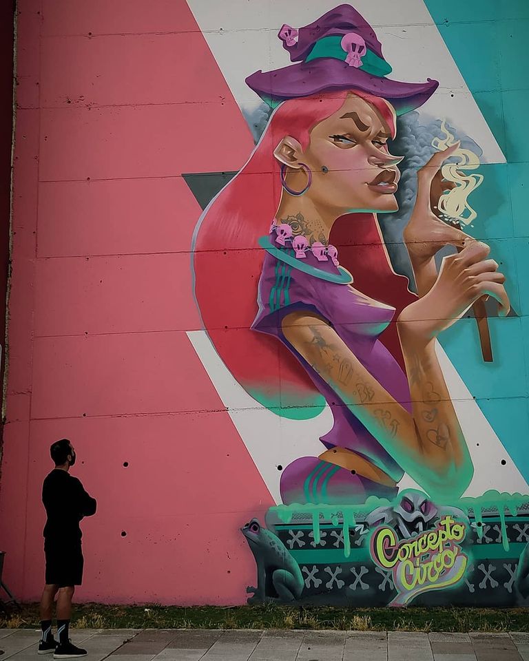 Y: Eu son unha persoa que pintei dende moi pequeno, por iso, como che dicía antes, para min o spray é unha técnica máis. Eu probeinas todas. Gústame experimentar. Logo posicioneime nunha cousa porque considero que para ser bo en algo tes que centrar esforzos nunha mesma cousa. Non podes ser bo en todo. Por iso, á marxe de todo isto, fastídiame que hoxe en día moitas veces se fagan concursos de graffiti onde persoas que non dominan a técnica xulguen, queiran ser xuíces, dunha disciplina que non dominan. É coma se eu xulgase un concurso de alta cociña. Eu creo que para xulgar e valorar algo tes que coñecer a dificultade que entraña esa actividade. Unha cousa é opinar sobre calquera cousa, pero algo diferente é xulgar, valorar se algo é mellor ou peor. Xa é difícil ou case imposible xulgar a arte, como para máis facelo dende fóra. É moi difícil atopar gañadores obvios porque a arte é moi persoal, moi subxectiva. Por iso a min non me gustan os concursos.