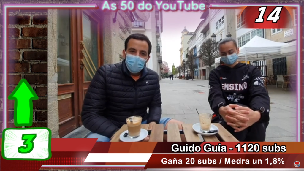 O mes pasado informoume A Lobeira today que a canle de Youtube Guido Guía entraba na lista das 50 canles de Youtube en galego máis activas e seguidas. Na última clasificación subo ata o posto nº 14 ![]()