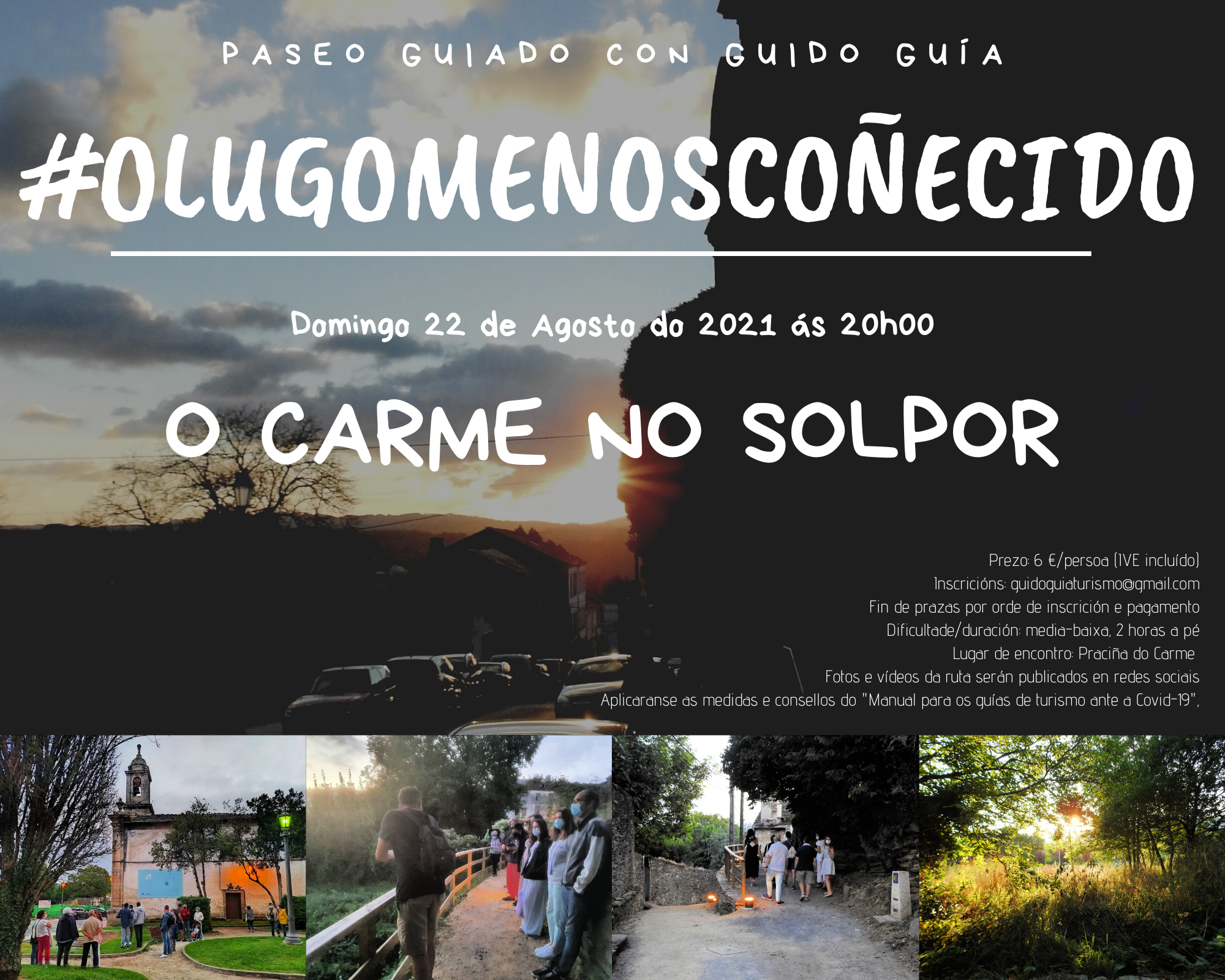 Ola amigos! Tralo éxito dos dous paseos guiados nocturnos polo Carme desta fin de semana, para a vindeira finde lanzamos un novo percorrido… desta vez #OCarmeNoSolpor