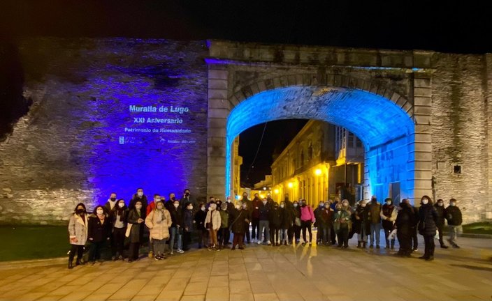 O último grupo, ademais, puido gozar unha vez caída a noite da iluminación ornamental que o departamento que dirixe Javier Arias encargou para o aniversario, coa proxección de motivos conmemorativos nas portas de San Fernando e Bispo Aguirre.